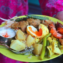 庭で手作りするマレーシア人も多く、人気のドリンク「テタレ/Teh Tarik」とともにティータイムの定番。具のスパイシーな香辛料と甘い紅茶が最高の相性です。