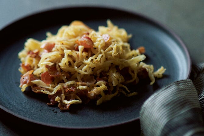 作り置きできる切り干し大根のピクルスをさっと炒めるだけ。ベーコンで旨みがアップ。