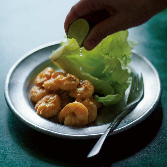 ピーナッツバターで炒めれば手軽にアジアの味。フレッシュなレタスと一緒にどうぞ。