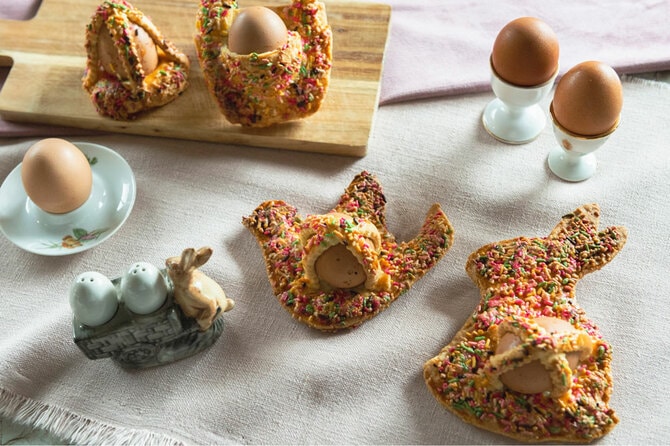 ・卵はうずらの卵でもOK。うずらサイズであれば一般的なクッキーの型を使って作れます。