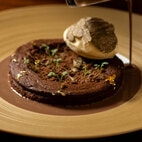 定番はもちろんのこと、季節で移り替わるメニューにも楽しみがいっぱい。秋の始まりに提供されていたのは、「いちじくのバシュラン」です。一度ローストして味わいを凝縮させたイチジクのソルベと、表面をキャラメリゼしたフレッシュなイチジク、シナモンやアニス、バニラが香るとろりとしたイチジクのソースという、3つのイチジクが織りなす味わいの濃淡とコントラストが、この皿の主役。