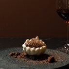 そこに、カルーア(コーヒーリキュール)をふわりと香らせたエアリーなクリームと、軽やかなメレンゲ、ほろ苦いコーヒー豆入りのチュイル、シナモンを重ね、意外性のある香りと食感をプラスしています。「日本のイチジクを食べたときにどこか土っぽい香りを感じたんですよね。そこで、苦すぎずまろやかなコーヒーをアクセントとして加え、どちらとも相性のよいシナモンでバランスを取ることにました。チュイルのカリカリやイチジクの種のプチプチといった食感も楽しんでいただけるかと思います」と、佐藤さんは話します。