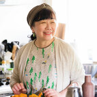 「食べるのが大好き」と屈託なくほほ笑む料理研究家の枝元なほみさん。おっとりとした話し方と温かな人柄。そして、食材を余すことなく使い切るレシピが人気です。