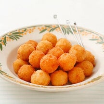根菜のこま、ギョーザの皮でつくっためんこ、茶きんのお手玉、揚げたこの凧あげ、にんじんの羽子板など、お正月にする遊び、昔なつかしい遊びをピンチョスで表現してみました。おせちよりずっと簡単にできて食べやすいので、ぜひつくってみてください。