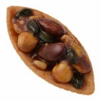 そして、型にはバターを厚く塗ってグラニュー糖をまぶしつけ、生地を流した上にバターをちぎりのせて焼くことで、外がカリッとコントラストのある食感に。香り高いラム酒漬けのプルーンが、コク深い生地とマッチします。