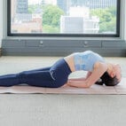 またお尻の筋肉をほぐすことで骨盤内の血流を促進させ、ホルモンバランスを整えたり、前屈・後屈で背骨の緊張を緩め、自律神経のバランスも整います。胸を開くことで呼吸が深まって、気持ちも前向きに! さらに上体を下げ、目を閉じることで自分と向き合うことができるポーズなので、自分の感情の整理にもつながります。