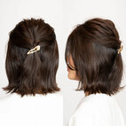 モノトーンの柄に60年代の香りを感じるヘアクリップと、ねじりの入ったゴールドのヘアピン。主張し過ぎないけれど「オシャレだな」と感じさせる組み合わせ。