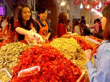 十分駅や平渓駅の周辺には昔懐かしい雰囲気の家並みが続き、天燈を扱う店がいくつも並んでいます。私がおすすめしたいのは十分駅近くの「阿媽の天燈」というお店。日本語が上手なおばあさんがランタンの飛ばし方を丁寧に教えてくれます。ランタンは一個100元くらいで、赤やピンク、青、黄色などいろいろな色があります。付近には、軽食を扱う屋台も出ているので、イベント前に腹ごしらえをしておくといいでしょう。