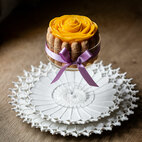 その周りを囲むのは、アマゾンカカオのプティ・シューとザクザクしたカカオニブ入りのシュトロイゼル。最後はチョコレート風味のクレーム・シャンティイと、アマゾンカカオのカカオハスク(カカオの外皮)の風味を抽出したジュレが混じり合い、満足感とともに香り高くすっきりとした後口をもたらします。