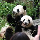 一方、四川省の都江堰では今年、シャオシャオ・レイレイと同じ2歳のオス・メスの双子(2021年9月12日生まれ)が、別れるどころか他の1頭と一緒に3頭で暮らし始めました。その1頭とは、シンガポールで生まれ、1月に中国へ渡ったオスのラーラー(叻叻、2021年8月14日生まれ)です(『シンガポールで初めて生まれたパンダ 上野のシャオシャオ&レイレイと同じ2歳という早さで来年中国へ』)。