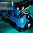 さて、「スペース・マウンテン」。搭乗口へと向かうエスカレーターもまた、高揚感を高めるつくりになっています。このエスカレーターで下から撮影すると映え写真が撮れるので、「自撮り」という文化がなかったその昔は、後ろに並んでいるゲスト(知らない人)によく「写真撮ってください〜」と、頼んでいました。そもそも、シャッター式カメラでは自撮りはできませんしね。