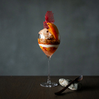 今回は、米麹に和歌山県・小南農園のブラッドオレンジとショウガを加えて10時間発酵させた甘酒に、レッドキウイ「ルビーレッド」とメロン、ブラッドオレンジのソースをかけ、ミントを添えて。ブラッドオレンジの鮮やかな色彩が美しく、米麹の粒感とやさしい風味に、ブラッドオレンジの果実味と丸みのある酸味が調和して、心と体が癒される味わいに。