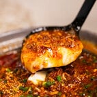 四川省から仕入れた唐辛子・朝天辣椒(チョウテンラージャオ)と花椒をたっぷり使っていて、皿が運ばれた途端にぷわーっと食欲をそそる香りが卓上に炸裂します。醬(ジャン)は使わず、豆鼓(トウチ)でコクを出すのが景徳鎮流。お肉は牛肉を使っていて、藤沢で特注している豆腐はかたすぎず柔らかすぎず。刺激的な辛さが牛肉のコクと豆腐の甘みをこよなく引き立たせています。