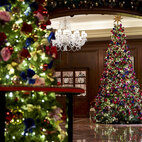 高級ホテルは、普段から一歩入ると別世界気分を感じさせてくれる場所。華やかな気分を思いっきり味わってほしい! と、たくさん訪れるゲストのために趣向を凝らしたツリーでお出迎えの準備が万端です。