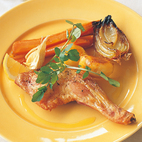(3)深めの鍋にバターを入れて中火で熱し、(2)の鶏肉とタマネギをさっと炒める。肉にバターがからんだらマッシュルームとBを加え、フタをせずに弱火で30~40分コトコトと、水気がほぼなくなるまで煮込む。