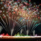 2025年は「PASSION~夏の今治をさらに熱くする10,000発の花火~」をテーマに、約1万発の花火が55分間にわたって打ち上げられ、大会の名物となっている尺玉100連発で締めくくる。色とりどりの花火が今治の夜空を乱舞するさまに心を打たれる。