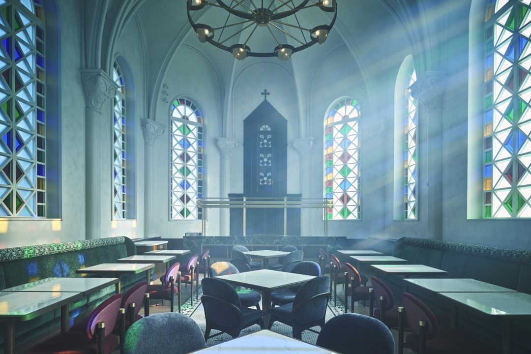 誰もが息をのむのが、かつての聖堂を改装したダイニング。神聖な気品をまとった光り輝く堂内は祝祭の空気に満たされ、その非日常感は圧倒的。