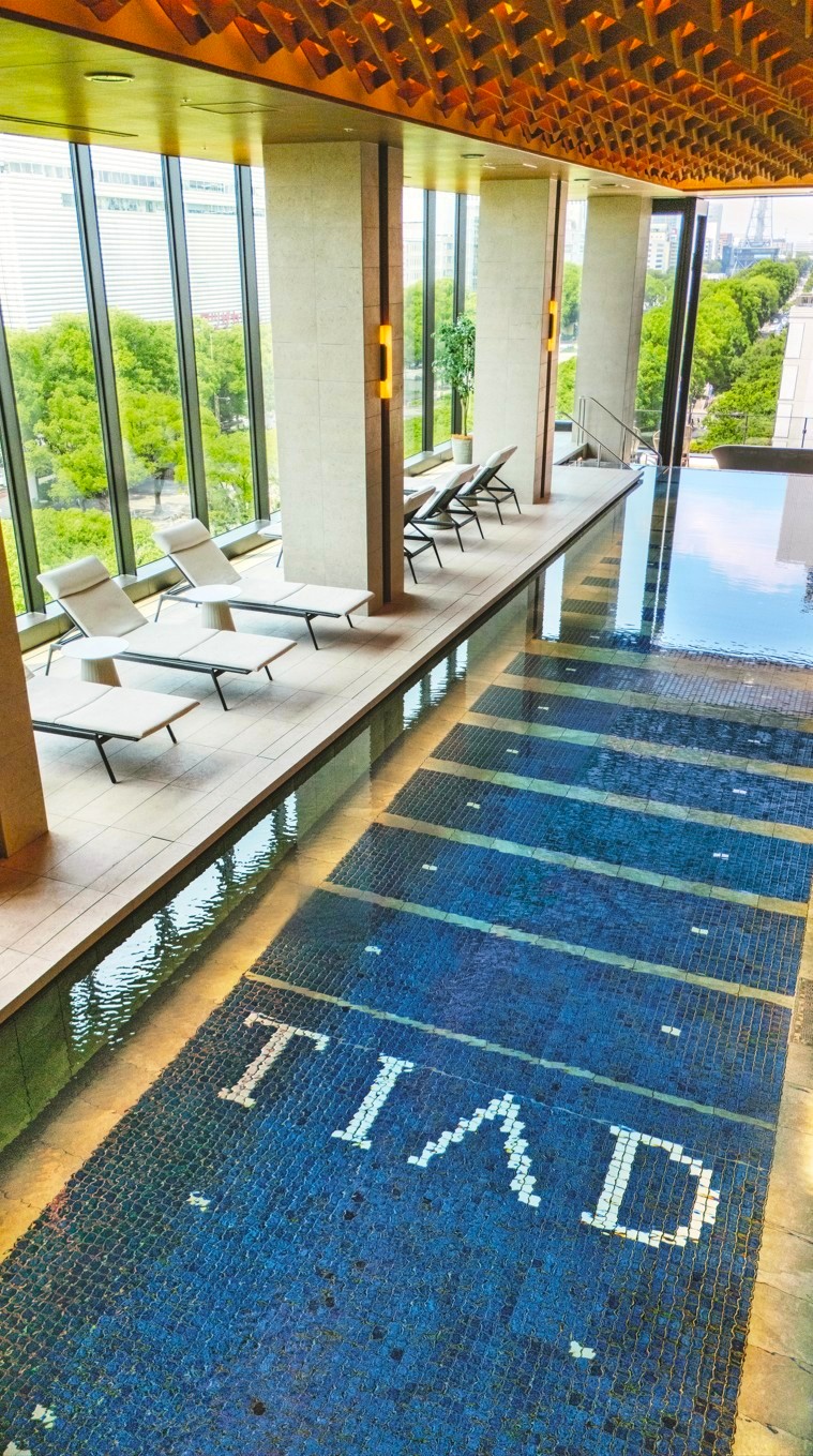 大きな窓の向こうに久屋大通公園の木々を望むインフィニティプール、温浴施設、ジムなどを備え、プライベートルームではエシカルなアロマテラピーブランド「エレメンタルハーボロジー」を使用したトリートメントも堪能できます。