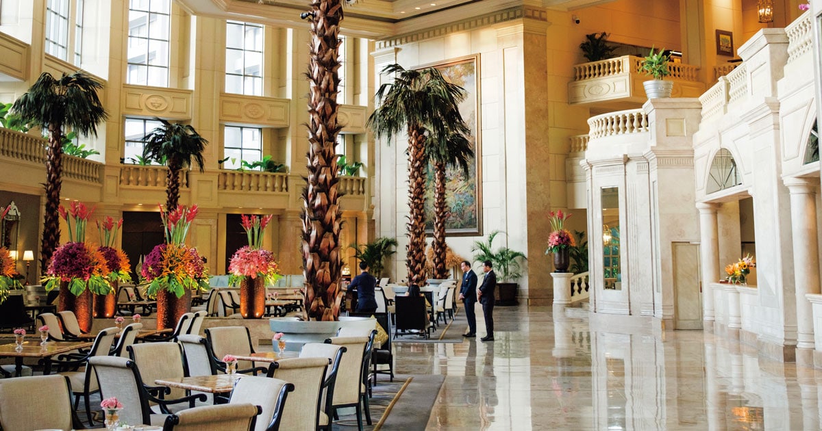 中でもマカティは「フィリピンのウォール街」と呼ばれる経済とビジネスの中心地だ。高層ビルや高級ホテル、ショッピングモールなどが建ち並び、朝夕には大渋滞が発生して満員のジープニー(第二次世界大戦中の米軍のジープをもとに作られた公共交通手段)が無数に大通りを行き交う。そんな活気溢れるマカティで圧倒的な存在感を示しているのが、フィリピンを代表するラグジュアリーホテル、「ザ・ペニンシュラマニラ」だ。