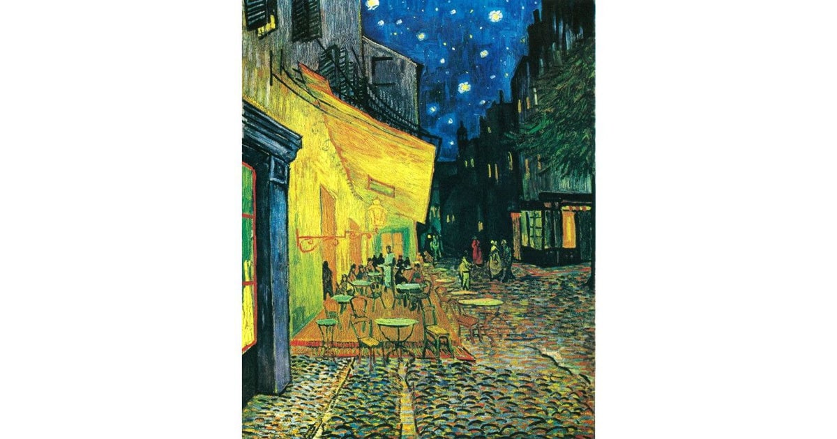 本作に描かれているカフェはアルルの中心部にあり、ゴッホはカフェの前の広場で、夜に実景を見ながら描いたことが分かっています。所蔵美術館によると、1888年9月16日か17日の星空をかなり正確に描いているそうで、ゴッホの観察眼の正確さも出ています。