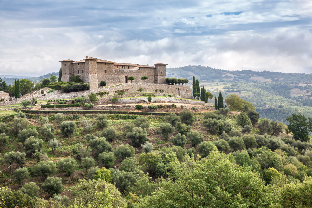 オリーブの樹々が連なり、放牧される羊の群れが白い点のように散らばる丘。遠くに海の青が揺らめき、空気にはローズマリーやタイムの香りが混ざります。その静かな風景の中心に佇むのが、カステッロ・ディ・モンテポ。ブルネッロ・ディ・モンタルチーノの生みの親として知られるビオンディ・サンティ家が、新しい挑戦の場として選んだ地です。