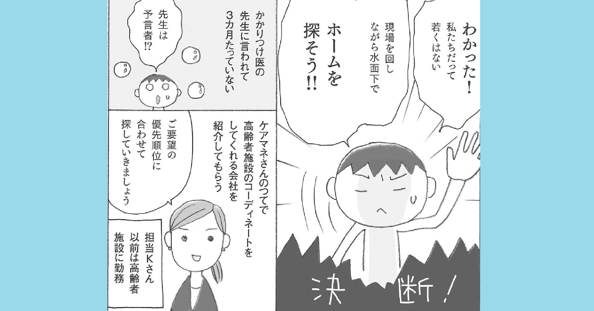 山口~横浜の遠距離在宅介護はもう限界、だけど父親は「いったん入ったが最後、刑務所といっしょだ!」と老人ホームへの入居を断固拒否――。漫画家・イラストレーターの上大岡さんはどんな思いで、さまざまな決断をしたのか。『マンガで解決 老人ホームは親不孝?』(主婦の友社)を一部抜粋して紹介する。