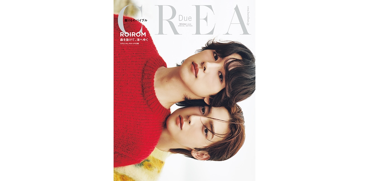 CREA Due 2026冬号 【特別版】の表紙に『timelesz project』で注目を集めたROIROMが初登場!「想像していたよりもっと優しくて、愛に溢れた世界が目の前に広がっていた」(大夢さん)。「芸能の世界なら自分のことを肯定できるかもしれないと思った」(路己さん)。選ばれる努力を重ねてきた日々を超え、今年、自らの意思で道を選び始めたふたり。「選択」をテーマにおふたりの本音に迫りました。