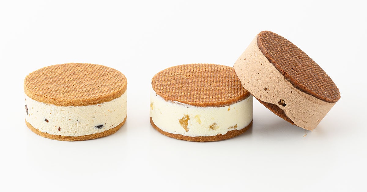 鶴田町産スチューベンのジュースで煮詰めたレーズン入りや青森県産リンゴが主役のものなど、3種類のバターサンドの詰め合わせ。