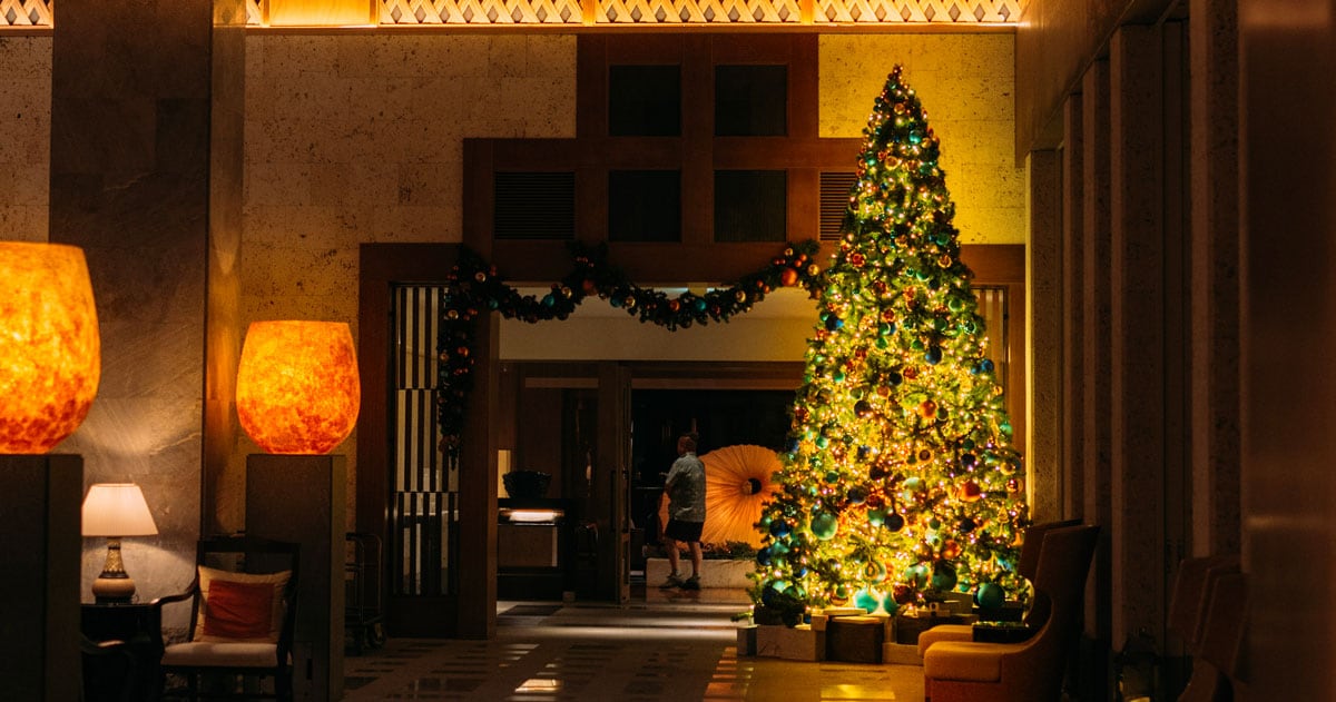 クリスマスも温暖な沖縄県名護市にある「ザ・リッツ・カールトン沖縄」。温暖な気候だから家族旅行で出かける人も多いかもしれません。