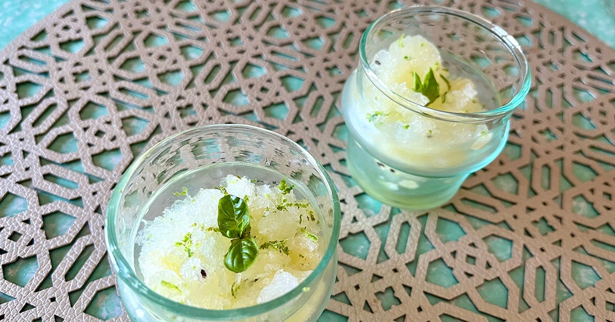 (4)冷凍庫から取り出し、グラスに盛り、あればミントの葉を飾る。