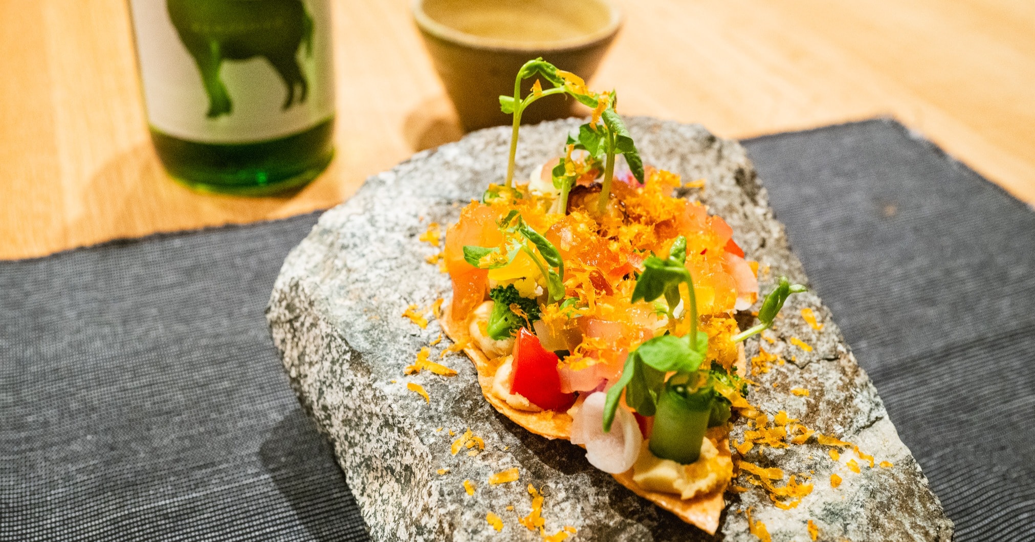 名前は「Né(ね)」。シンプルなこのネーミングは、フランス語で“生まれる”の過去形で“生まれた”の意味を持ち、また日本語の「根」の意味も込められています。「逆境が育んだ創造。旬を超えて時がつなぐ一皿。」をコンセプトに、文化と生命の循環を目指す「Né」。いったいどのような場所なのでしょうか?