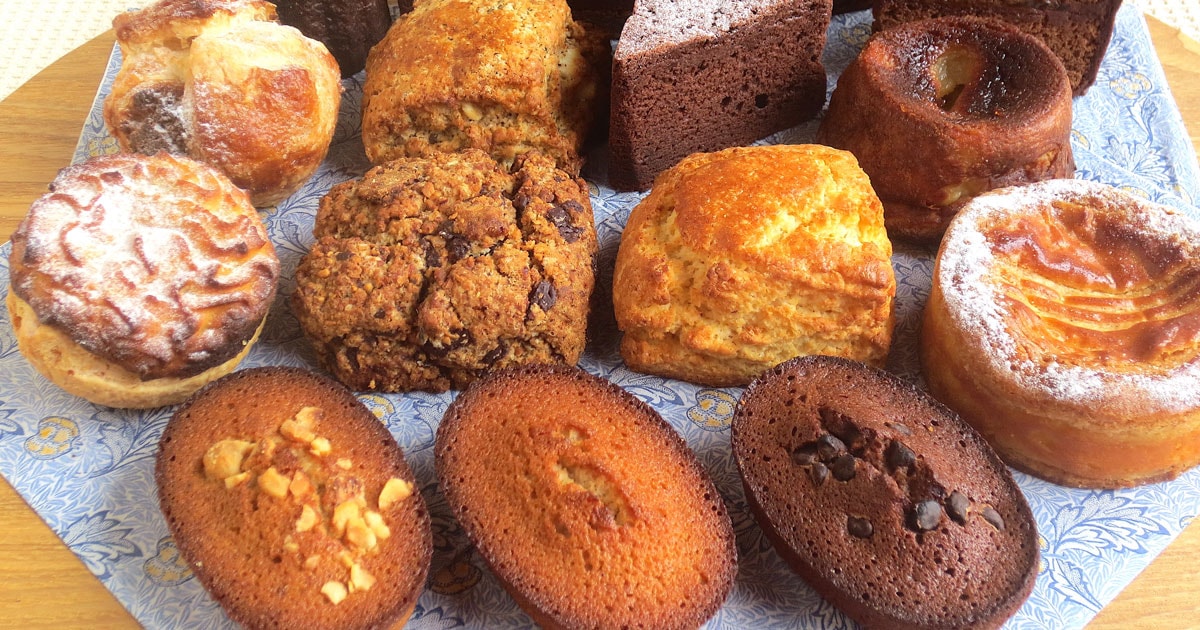 2024年2月にオープンしたお店は、「当日焼きたてのお菓子がおいしい」と話題になりました。中でも人気なのが「朝焼きフィナンシェ」。フィナンシェは、濃い焼き色をしており、キリッとエッジが立っていて見た目も美しい。ひと口食べると、焦がしバターとナッツのプードル(粉)の風味が口いっぱいに広がり、一度で虜になるおいしさ。プレーンとノアゼット、ショコラで、プードルの配合を変えるというこだわりよう。