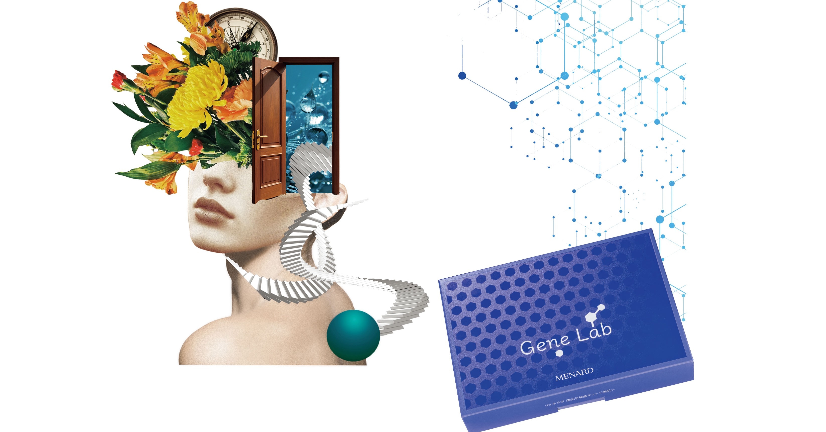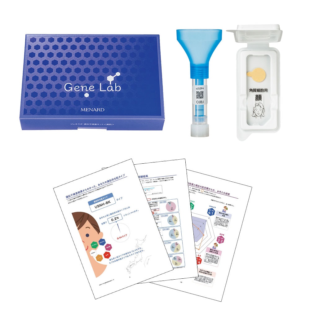 遺伝子検査と現在の肌分析を融合した、日本初(※1)の美容アドバイスサービス。唾液と頬から採取した角質細胞を提出すると、約2カ月で34ページにわたるアドバイスBOOK(写真下)が到着。遺伝的な肌の強みや弱点、現在の肌状態を総合的に分析し、自分の肌にとって本当に必要なケアを導き出す。先天的&後天的、両面からの分析だから「現状のスキンケアの答え合わせ」も可能に。ジェネラボ 遺伝子検査キット<美肌> 11,000円。