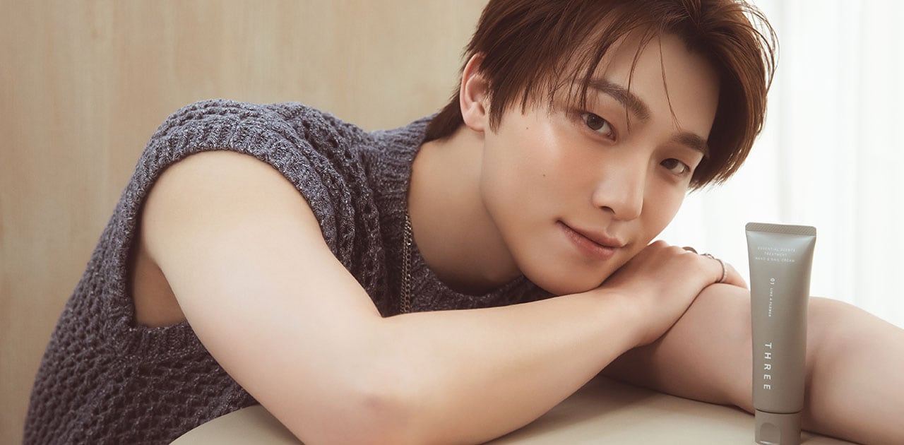 「2023年にリリースしたソロ曲『Wait』のMVもチークをポイントにしたメイクでしたが、あの時はもっとファンタジー要素がありました。今日のメイクには普段の僕のナチュラルな部分が表れていて、これもすごく良いと思いました。僕らのグループのメイクの先生にこのTHREEのアイテムを贈ったら、13人それぞれの魅力を引き出すチークメイクを生みだしてもらえるかなと思います」