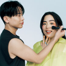 DINOの魅力といえば、生命感あふれる健康的な美。今日のメイクは「シマリング グロー デュオ R」をチークにオン。リアルな体温を感じさせるヘルシーな血色感がさらにプラスされたことで、唯一無二のピュアでフレッシュな色気が引き出された。
