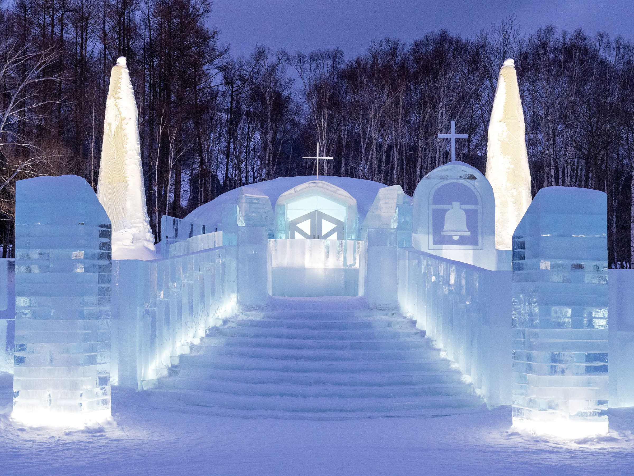 氷の教会で挙式、氷のホテルで宿泊!氷のレストランにバー、ブティックまで。 真冬の夜にだけ現れる氷の街「アイスヴィレッジ」で氷点下の北海道トマムを遊び尽くす!