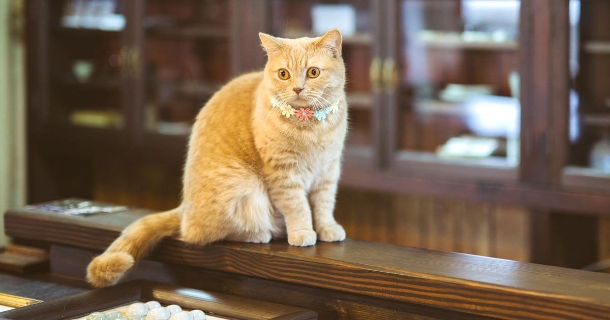 「香平はクリームタビー色のブリティッシュショートヘアの男の子で、今年3歳になりました。名前の由来は、父が彼の体の色に近い“香色”という和の色を見つけて。それで、初代店長の創平(そうへい)から一文字受け継ぎ、名付けました」と話すのは熊本象さん。