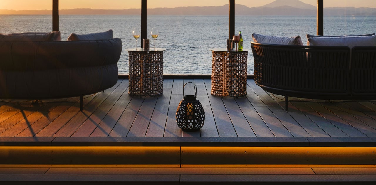 そして、このリゾートでの滞在のもうひとつのハイライトとなるのが、最上階の「ルーフトップラウンジ 宵星(よいぼし)」。フリーフローでワインやカクテルなどを用意し、グラスを片手に180度の絶景を満喫。