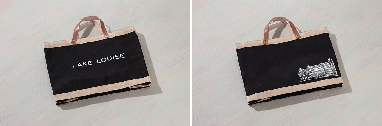 本アイテムは、同ホテルの外観イラストと「LAKE LOUISE」の文字をあしらった、ナチュラルな麻素材のオリジナルエコバッグです。