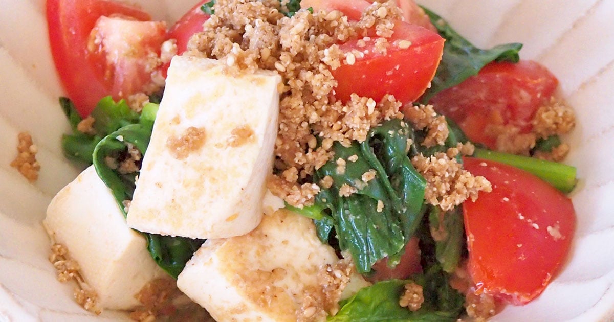 ここに、不足しがちな鉄分などを補うほうれん草を合わせることで、体のバランスを底上げします。豆腐はレンジで加熱してから焼き目をつけることで、水っぽさが軽減され、食感がよくなり満足感のある仕上がりになりますよ。肌寒い日は、ホットサラダにすることで食べやすさがアップします。