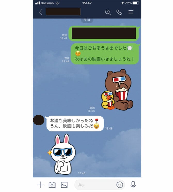 「スヌーピーとかポケモンとか、誰もが知ってるキャラクターのスタンプは無難だと思う。でもそもそも大人の男性は、スタンプをあまり頻繁に使わないほうがいいんじゃないかな。例えばデートの待ち合わせ直前に、『了解!』みたいなスタンプを使うとか、短文で返事が済むようなときに使うのはアリだし、ふとしたやりとりの間に雰囲気を和らげるために使うのもアリだと思うけど、基本的に乱用はしないでほしい。