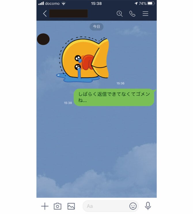 個人的にウザいなって思うのは、スタンプだけいきなり送られてくるとき。メッセージのやりとり中に流れでスタンプを使うなら全然いいんだけど、やりとりの初手からスタンプって……。何が言いたいのかよくわからないし、こっちから用件を聞かないといけないから、めんどいよね」