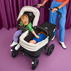 常にユーザー視点に立ち商品開発を続けるバガブーから2023年6月7日に発売されたのが「Bugaboo Dragonfly(バガブー・ドラゴンフライ)」。緻密なステアリングとサスペンションにより、凸凹のある都市部の路面でもスムーズな走行に。「石畳の道でも赤ちゃんがいつの間にか寝ていた」という体験談があるほどです。