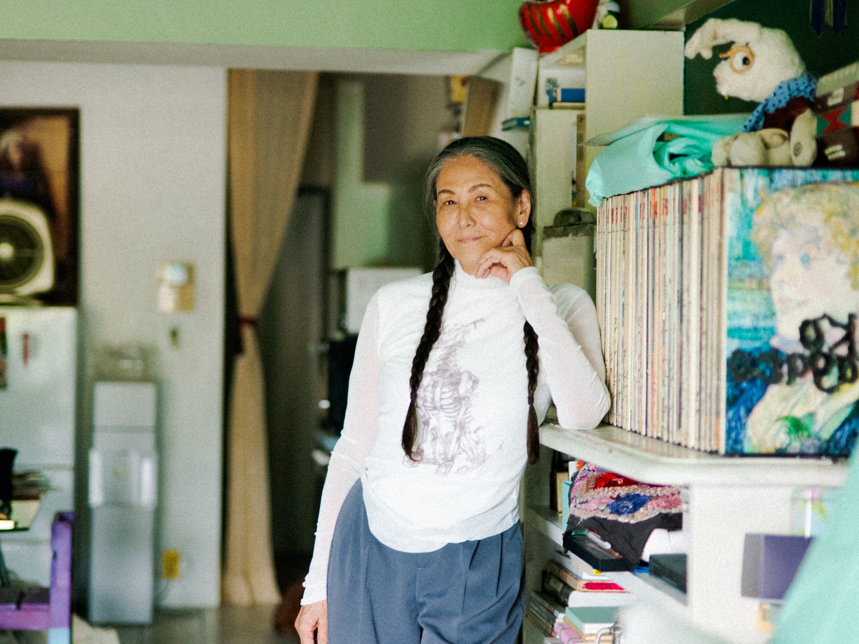 彼女と同時代を生きてきた畏友、ミュージシャンの近田春夫さん(74)を聞き手に迎え、稀代の女傑の半生を彼女のアトリエで掘り下げる。