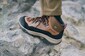 今回の旅のパートナーはスティーンズピーク ツー アウトドライ(18,920円)。活火山だけあって、地面は火山礫に覆われているがしっかりとグリップし登山をサポート。小椋さんも「自分の足で登っている感覚がありながら、グリップ感がしっかりあるので多くの人が履きやすいって感じると思います。硬すぎるとバランスが取りづらいって感じることがあるのですが、この靴はバランスがすごくいいですね。疲れも軽減されそう」と太鼓判。