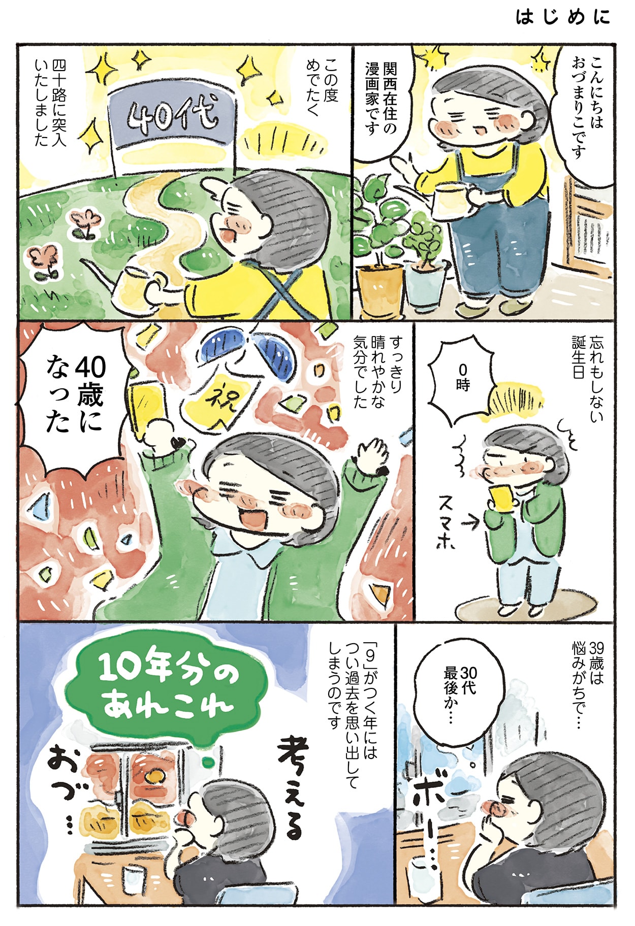 いちばん心地いい、わたしを探して――。 40歳を前に、関西へUターンしたおづさん。かわいい赤のケトルを買ったり、40歳のお金の見直しをしたり、念願の猫を飼い始めたり、新しい暮らしづくりに勤しんでいます。「40歳の身だしなみ」ということで、黒縁メガネやキャップ、ひとてま“だけ”美容からインナーカラーにまで挑戦して、四十路の装いを楽しむ日々。40歳を記念して、沖縄ひとり旅にも出発! 時には「あきらめる練習」や「人を誘う勇気を出す」「自分と違う人と過ごしてみる」など、自分の生き方を見つめ直すことも。楽しくて前向きな変化に満ちた、日々の実感をつづるコミックエッセイです。