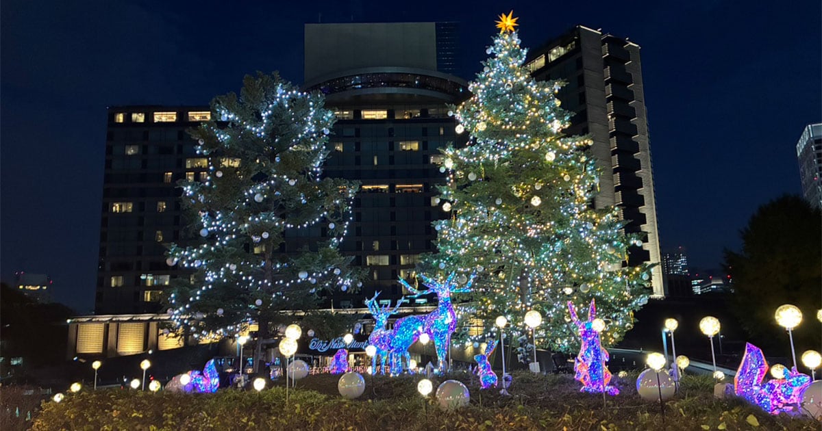 ホテルの玄関もたっぷりと電飾で飾られ、クリスマスの滞在にワクワクします。