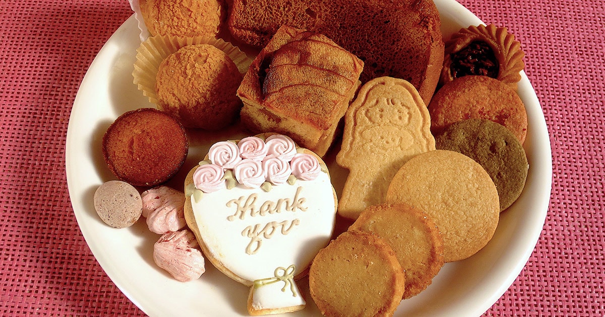 阪急京都線高槻市駅から、南に歩くこと20分余り。閑静な住宅街に、お菓子を焼く、甘く香ばしい匂いが漂っています。「BAKE SHOP DOUDOU(ベイクショップ ドゥードゥー)」はガラス張り。赤いタイルのカウンターには、サブレやプチケーキがいっぱい並んでいます。