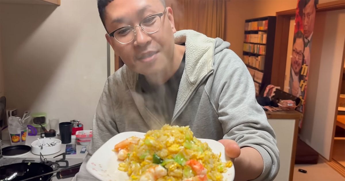 なかでも際立つのが、チャーハンだ。YouTubeの動画で紹介された調理工程によれば、卵・砂糖・マヨネーズを混ぜたご飯とは別に溶き卵を用意し、自家製のネギ油まで仕込む。中華鍋は空焼きと油ならしを重ね、しっかりと使い込まれている。お玉も高熱で炙り、防錆コーティングを取る工程を済ませたものだ。