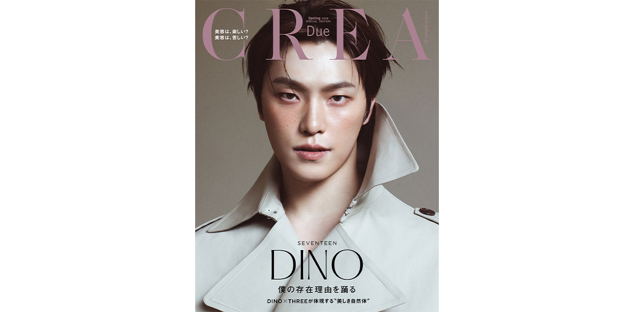 特別版(『CREA Due』2026 Spring SPECIAL EDITION)の表紙を飾るのは、世界中を熱狂させてきた13人組グループ・SEVENTEENにおいて、その圧倒的なダンススキルでパフォーマンスの核を担うDINOさん。DINOさんにとって、日本の雑誌の表紙に単独で登場するのは初めてのことです。特別版には、スペシャルカバーインタビュー「僕の存在理由を踊る」(全8ページ)を掲載。さらに同日発売の通常版(『CREA』2026年春号)には、特集テーマであるビューティの観点からDINOさんに迫ったインタビュー「美しさって、何なのだろう?」(全8ページ)を掲載。特別版・通常版あわせて計 16 ページにわたるWストーリーで、表現者としてのDINOさんの現在地を余すところなくお届けします。
